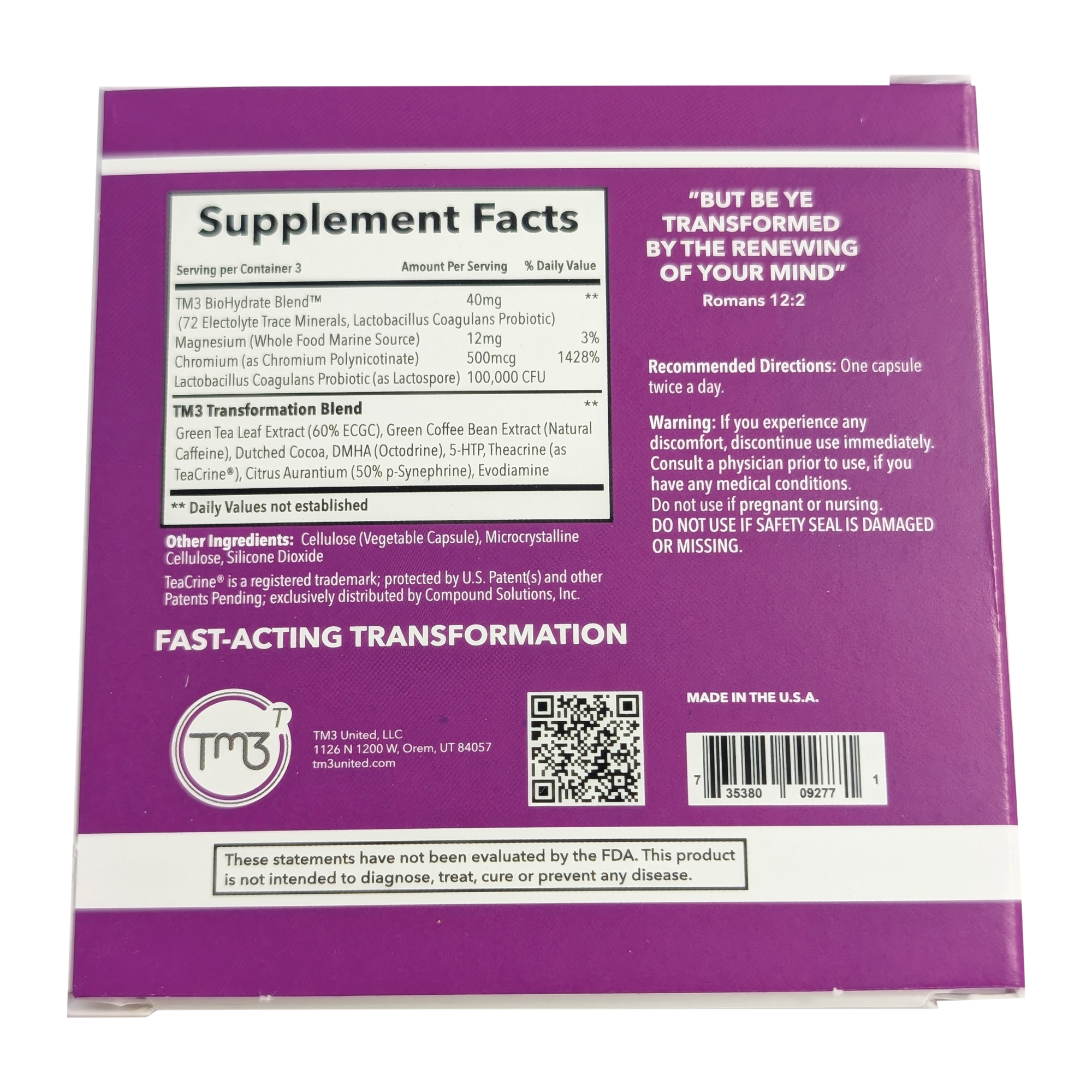¿Listo para tomar control de tu energía, enfoque y bienestar general? Transform de TM3 United es tu respuesta para una vida con propósito. Con una mezcla de ingredientes naturales como extracto de té verde, grano de café verde y cacao procesado, Transform te da el impulso que necesitas para sentirte más energizado, enfocado y en control de tu apetito. Dile adiós a los días lentos y hola a un tú más saludable y feliz.